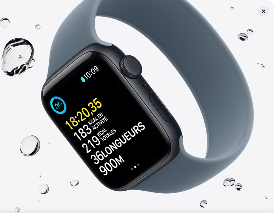 L’Apple Watch SE 3 est résistante à l’eau jusqu’à 50 mètres7. Que ce soit pour barboter, nager ou surfer, elle n’a jamais peur de se mouiller.