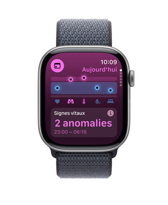 L’écran avancé de la Series 11 atteint 2 000 nits de luminosité à son maximum, soit le double de celui de la Series 8, pour faciliter la lecture en plein soleil. Il est également plus adapté aux situations de faible éclairage, comme une salle de cinéma, grâce à sa luminosité pouvant descendre jusqu’à 1 nits.