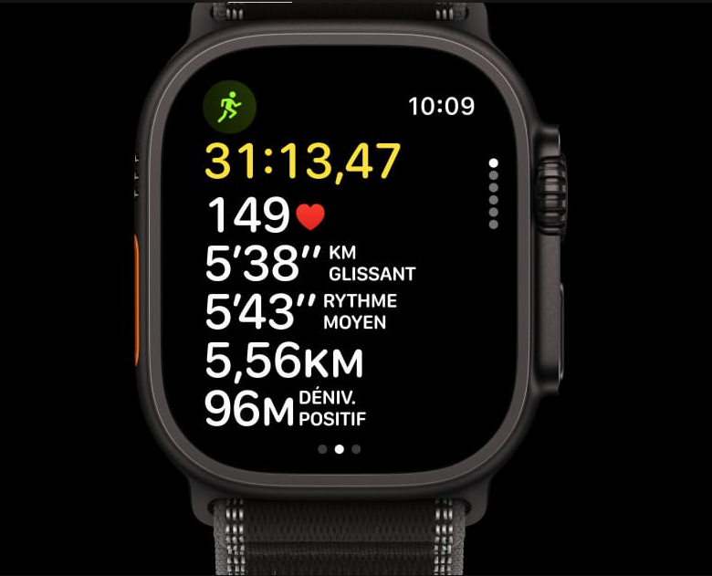 Aux adeptes de la course à pied. L’Apple Watch Ultra 3 réunit tout ce dont vous avez besoin pour vous entraîner plus efficacement et atteindre vos meilleures performances. Le GPS double fréquence haute précision, les données avancées, les exercices personnalisés et toutes les fonctionnalités de pointe vous aident à vous dépasser. Et désormais, si vous sortez courir juste avec votre Ultra 3, vous pouvez toujours profiter de la 5G ultra‑rapide8.