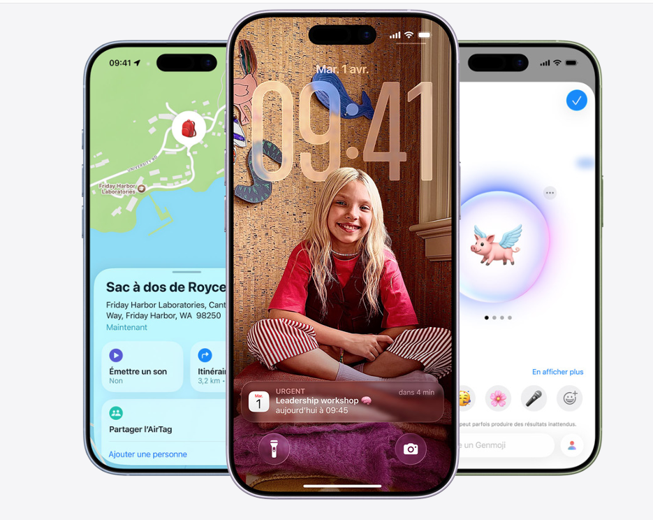 La puce A19 booste tout ce que vous faites sur votre iPhone, des fonctionnalités Apple Intelligence comme Traduction en direct et Image Playground à la technologie ProMotion pour les jeux AAA sophistiqués. Avec une autonomie d’une journée, vous pouvez travailler, regarder des contenus et faire tellement plus